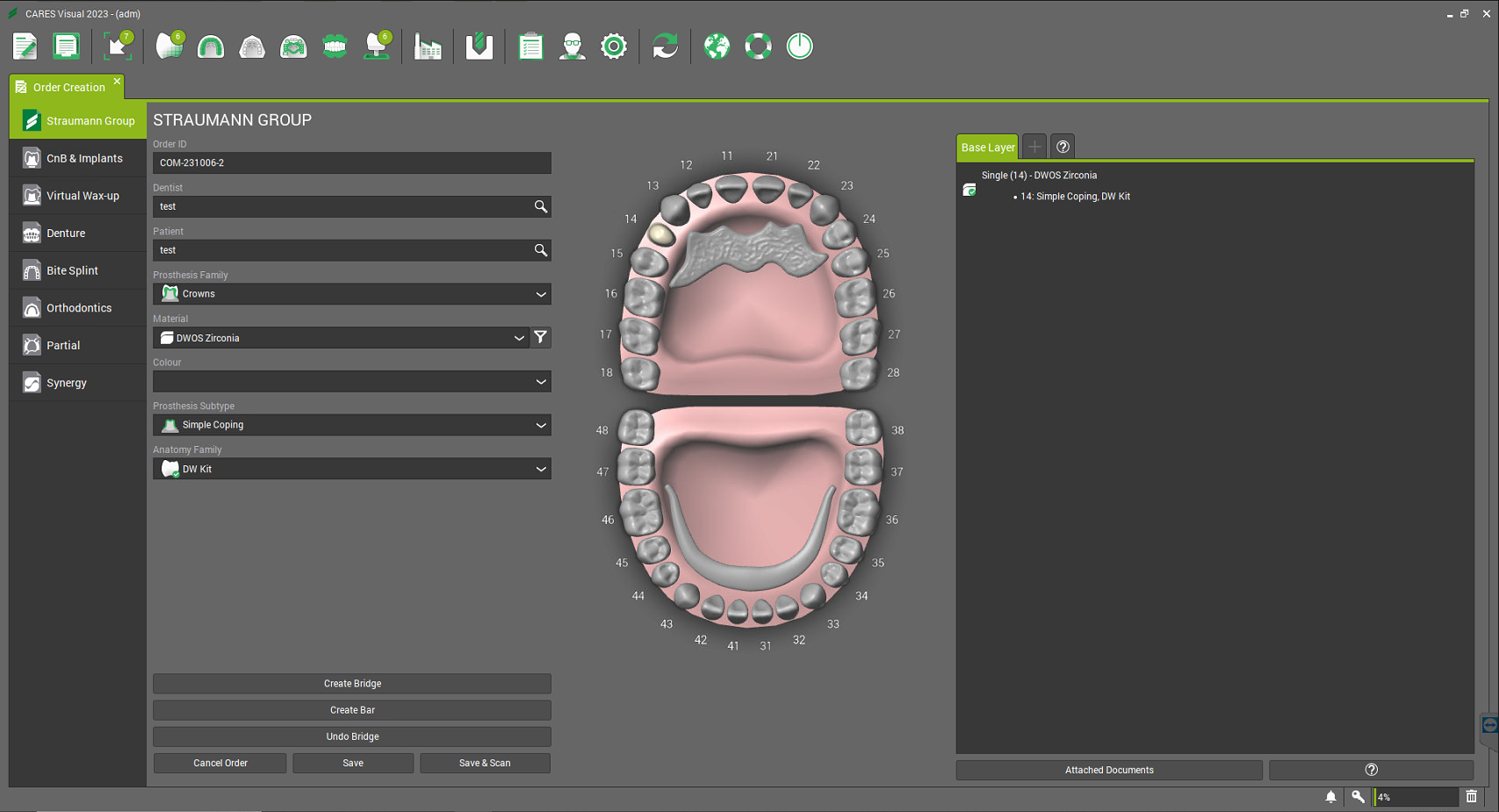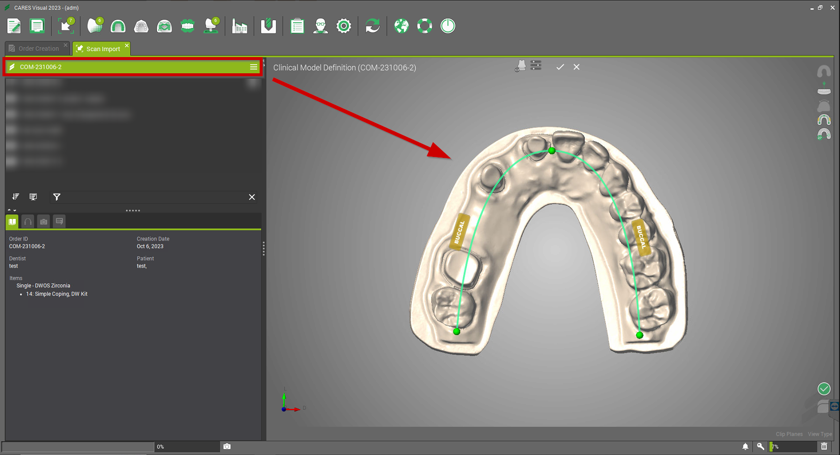 - To make a only one scan created from DWOS/CARES to Medit scanner, you need to create an order exemple a simple coping and click on "Save and Scan":