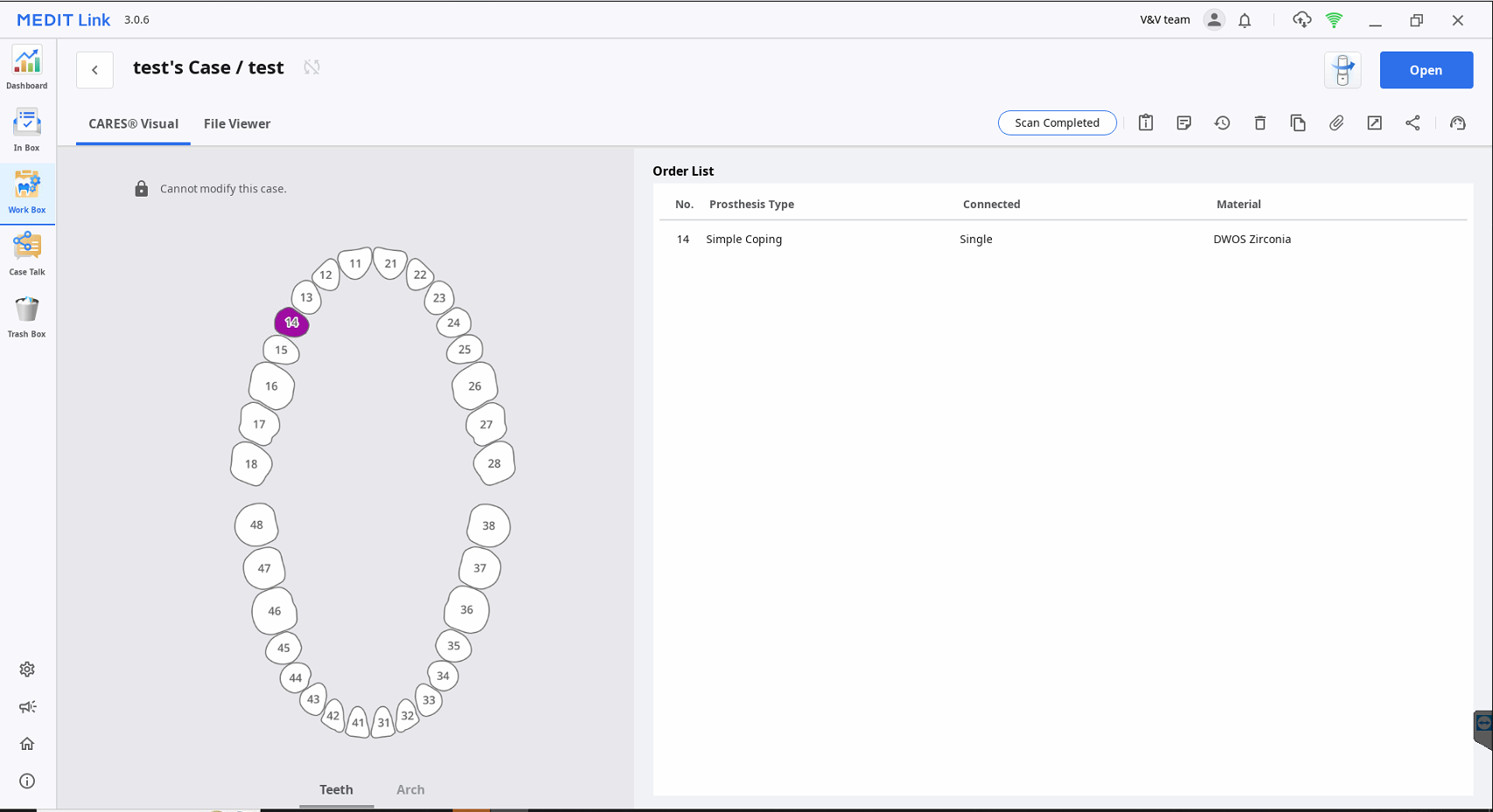 - Once the "Scan Completed", you will be able to open it in "CARES/DWOS" and a single scan will be available to export or start a case:
