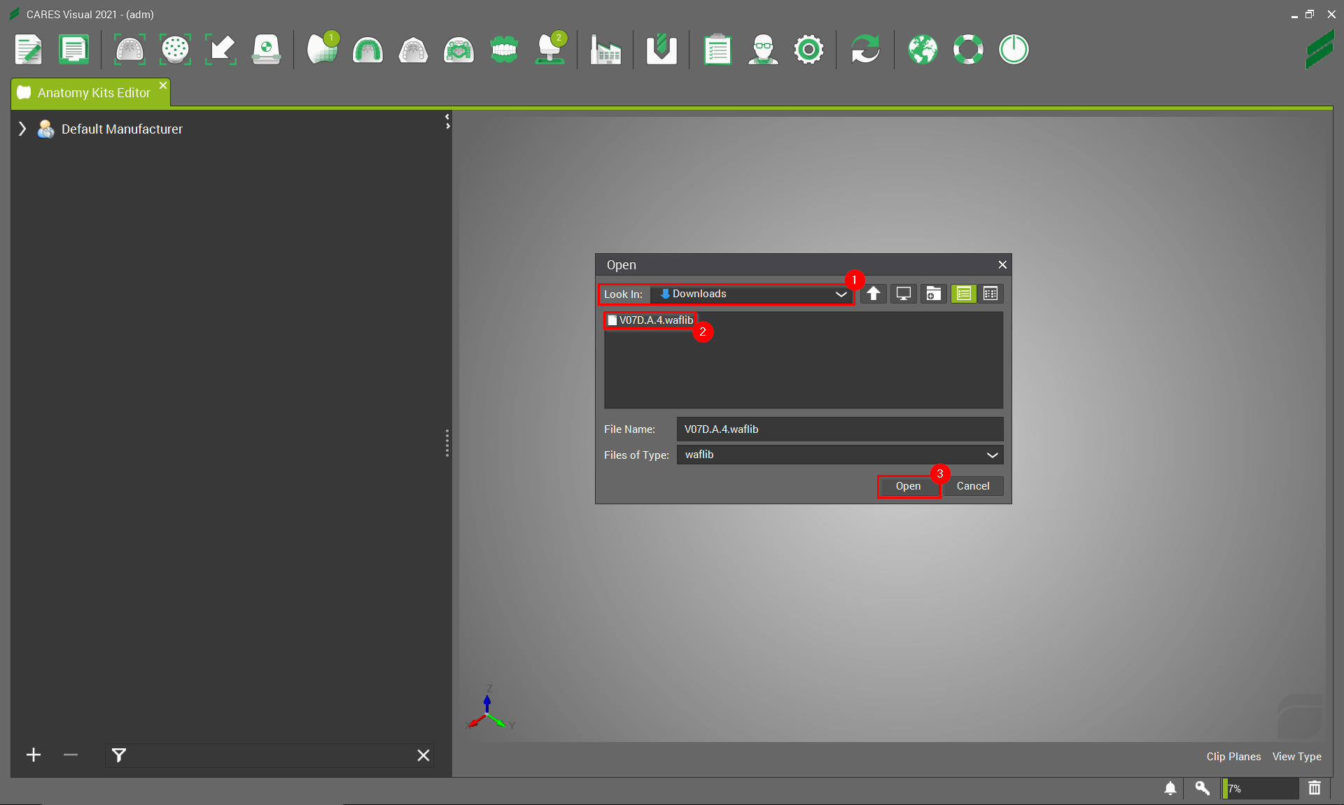 5 - A new window will be opened, select the file location, click on the "Anatomy Kit" and validate with "Open" :